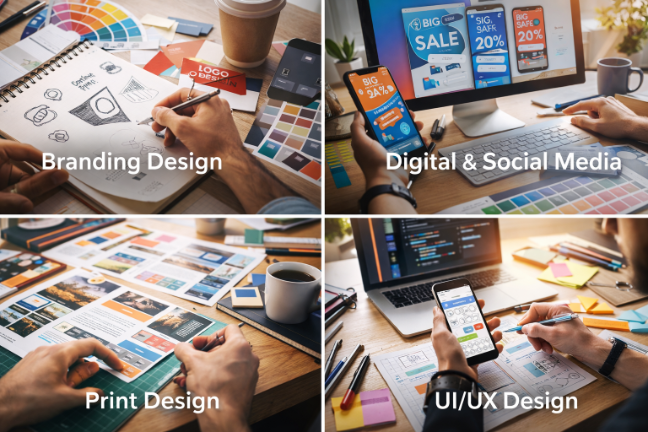 التصميم الجرافيكي هو عملية إنشاء محتوى بصري باستخدام النصوص والصور والألوان بهدف توصيل فكرة أو رسالة معينة. يستخدم المصممون أدوات وتقنيات مختلفة لإنشاء تصاميم تُستخدم في الإعلانات، المواقع الإلكترونية، وسائل التواصل الاجتماعي، الشعارات، المطبوعات، وغيرها.